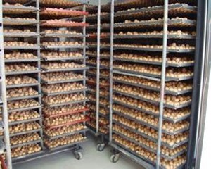 脫青皮后8小時(shí)內(nèi)入箱上架排濕烘烤,排濕溫度30—35度。烘烤時(shí)間12---15小時(shí),果殼表面水分散失,顏色有黑褐轉(zhuǎn)為褐色時(shí)排濕結(jié)束。
