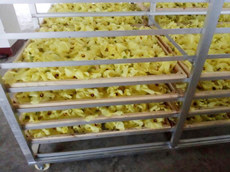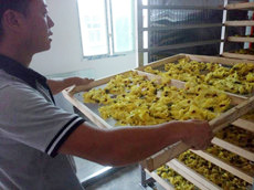 3、熱風(fēng)在烘箱內(nèi)循環(huán)均勻的吹到花卉表面,內(nèi)、外同時加熱,無焦葉、焦邊、碎屑等,產(chǎn)品質(zhì)量好:由于花卉的表面溫度不太高,葉綠素變化少,色澤綠翠而耐藏,香氣損失少,干燥均勻。